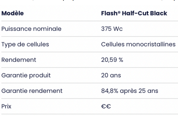 Actuellement, DualSun propose le Flash® Half-Cut Black, disponible en deux puissances :