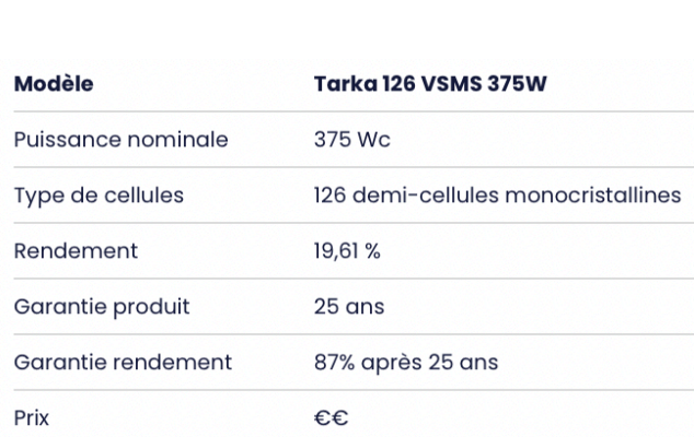 Tarka 126 VSMS 375W Voltec375 Wc19,61 %25 ans